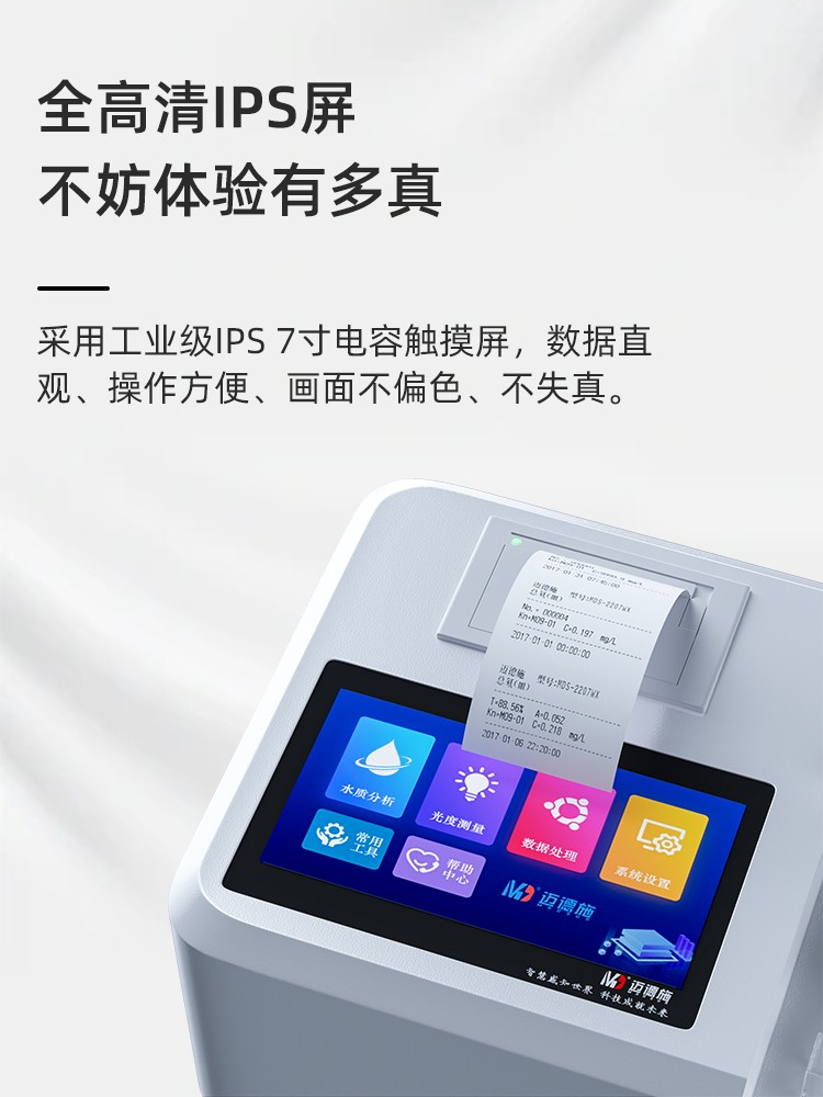 人工智能語音播報提示,可隨意調節音量, 使用更方便更 配備112種預先編程的曲線,曲線數量990條,可濃度直讀,測量結果更精密; 具有數據存儲功能,可存儲90萬組數據,并能自由查看; 10寸彩色液晶顯示觸摸屏,全中文操作模式,更便于操作掌握; 儀器自備校準功能,可根據標準樣品計算, 并存儲曲線,無需手動制作曲線; 配備USB接口傳輸功能,自帶打印機,可打印當前數據及存儲的歷史數據; 采用管比色、皿比色,雙比色系統